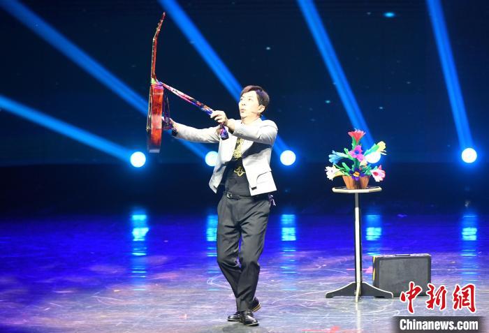 6月15日,海峽兩岸藝術交流活動在廈門啟動,“藝”心同行文藝演出同時舉行。本次活動包括海峽兩岸藝術交流節開幕文藝惠民演出、閩臺大學生魔術交流大會、海峽兩岸青少年街舞展演等內容。圖為臺灣魔術師粘立人在臺上表演節目。中新社記者 呂明 攝