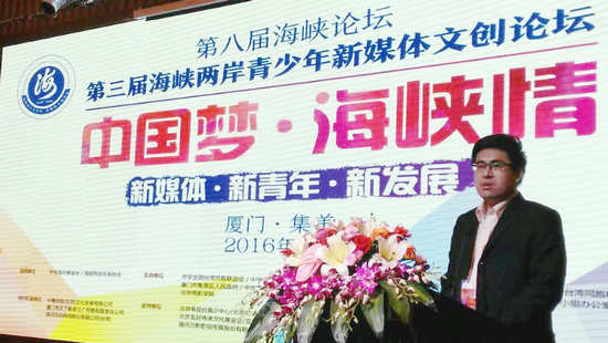 第三屆海峽兩岸青少年新媒體文創論壇于6月12日下午在廈門集美區京閩北海灣酒店拉開帷幕。該論壇是第八屆海峽論壇的重要項目,由中華海外聯誼會、海峽兩岸關系協會指導,由中華全國臺灣同胞聯誼會、中華全國青年聯合會、廈門市集美區人民政府、臺灣中華青年數位文創交流協會、北京電影學院主辦,臺聲雜志社、中國青年網、福建省臺聯、福建省青聯、廈門市集美區文化改革發展工作領導小組辦公室承辦,由中青創投(北京)文化發展有限公司、廈門市天下集美文廣傳媒有限責任公司、臺灣銀河互動網絡股份有限公司組織實施,由北京電視臺青少中心、北京紀錄片協會、北京友好傳承文化基金會、亞星三網(北京)科技文化有限公司、福州萬影影視傳媒股份有限公司支持。