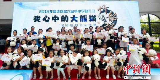 中新網(wǎng)廈門6月10日電 (楊伏山 林來生)大陸首個對臺研學(xué)基地10日舉行首屆“我心目中的大熊貓”現(xiàn)場繪畫比賽頒獎儀式,從500幅參賽作品中脫穎而出、榮獲金獎的49幅優(yōu)秀作品,在第十屆海峽論壇配套活動之一的“兩岸特色廟會”亮相展出。