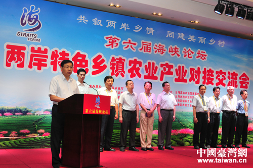 日前,第六屆海峽論壇·兩岸特色鄉(xiāng)鎮(zhèn)農(nóng)業(yè)產(chǎn)業(yè)對接交流會在廈門舉行。農(nóng)業(yè)部總經(jīng)濟師畢美家出席開幕式并致辭。(中國臺灣網(wǎng) 發(fā))