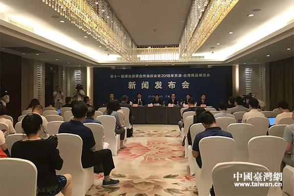 第十一屆津臺(tái)投資合作洽談會(huì)暨2018年天津·臺(tái)灣商品博覽會(huì)新聞發(fā)布會(huì)4日下午在天津舉行。(中國(guó)臺(tái)灣網(wǎng) 趙苗青攝)