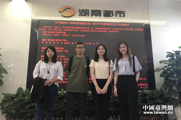 陳瑋珊和小組成員們一起來(lái)到都市頻道報(bào)到(圖片來(lái)源:湖南省臺(tái)辦)