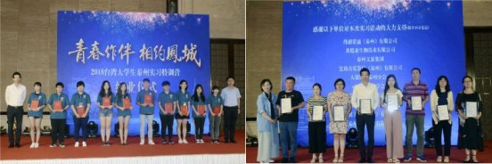 為了表達(dá)對(duì)實(shí)習(xí)單位的感謝,臺(tái)灣主辦方中華創(chuàng)新資源整合協(xié)會(huì)特地為八家實(shí)習(xí)單位頒發(fā)了感謝狀。