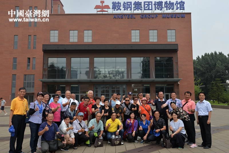 參訪團(tuán)在鞍鋼博物館前合影留念(圖片來源:遼寧省臺(tái)辦)