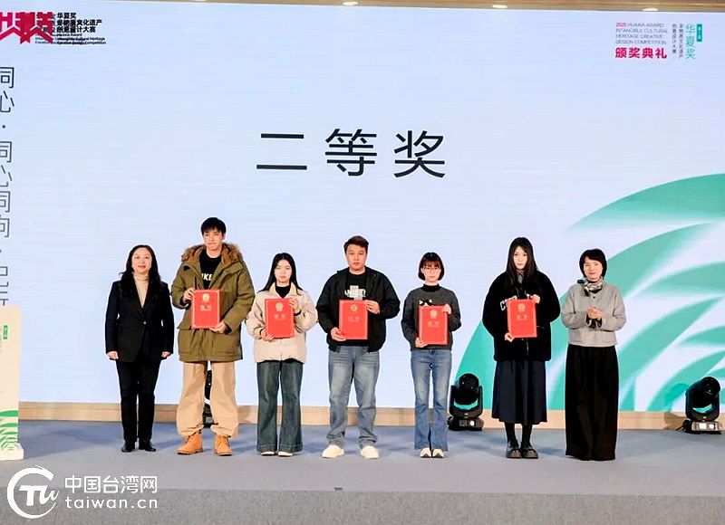 二等獎(jiǎng)獲得者上臺(tái)領(lǐng)獎(jiǎng)。(中國(guó)臺(tái)灣網(wǎng)發(fā))