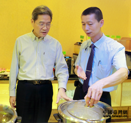中共中央臺(tái)辦、國(guó)務(wù)院臺(tái)辦主任張志軍14日下午在浙江杭州考察臺(tái)資企業(yè)“素·繽紛”素食餐廳。(中國(guó)臺(tái)灣網(wǎng) 于斯文 攝)