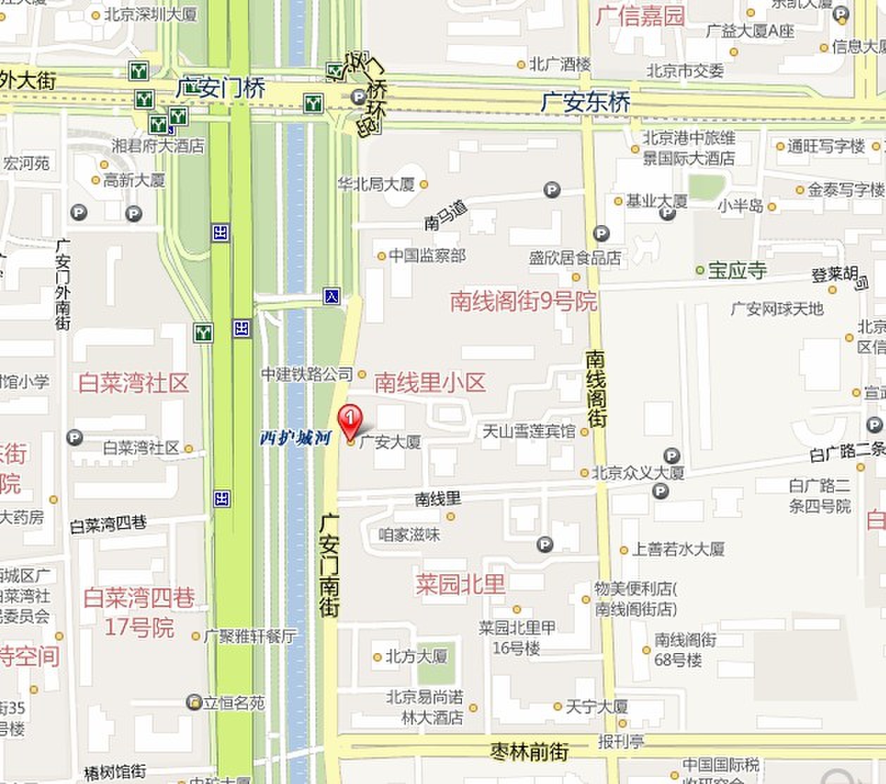 3、從南向北走:南二環(huán)至西二環(huán)白紙坊橋出口出去,往東(右轉(zhuǎn)),第一個(gè)紅綠燈往北(左轉(zhuǎn)),沿河邊一直往北走,北方工業(yè)公司向北200米,馬路右邊廣安大廈即到。