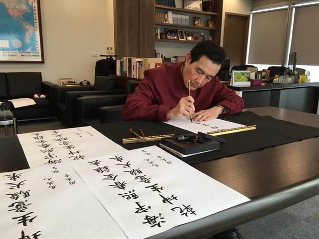 馬英九揮毫,親筆寫(xiě)狗年春聯(lián)。(圖片來(lái)源:臺(tái)灣《中時(shí)電子報(bào)》)