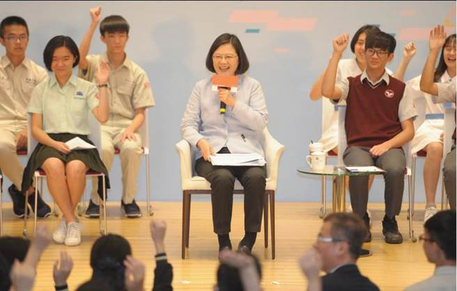 蔡英文12日與臺灣高中生座談。(圖片來源:臺灣“中時電子報”)