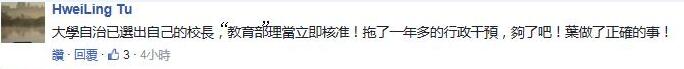 2)面對大學自治,即使身為臺灣地區領導人,對于校長的人選,也沒有置喙的余地,但她期待——大學自治應該對“程序正義”有所堅持;