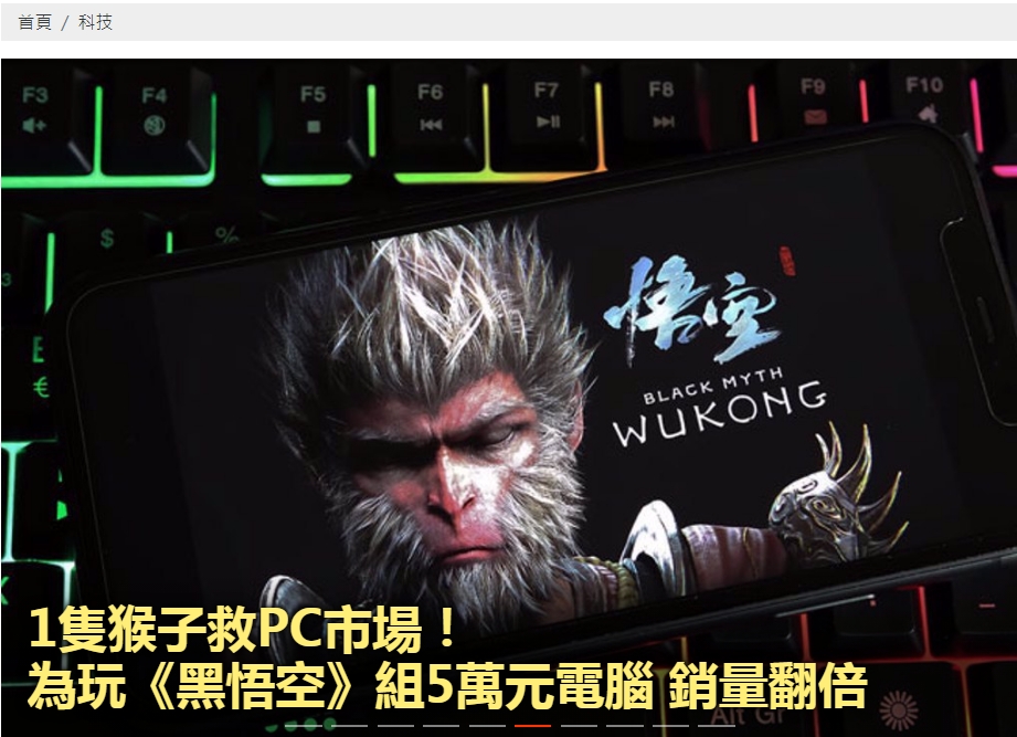 除了在現象層面“看熱鬧”,有臺媒也開始關注事件背后有關繁榮社會經濟的“門道”。臺灣《工商時報》社論指出,即使一些向來對“中國制造”抱持負面態度的評論者,都承認這款游戲無論在故事性、可玩性、制作水平方面,都已達國際水平!逗谏裨挘何蚩铡返某晒Γ某種程度展現了大陸近年來“硬”“軟”兩路并進、推動產業轉型升級的企圖心。