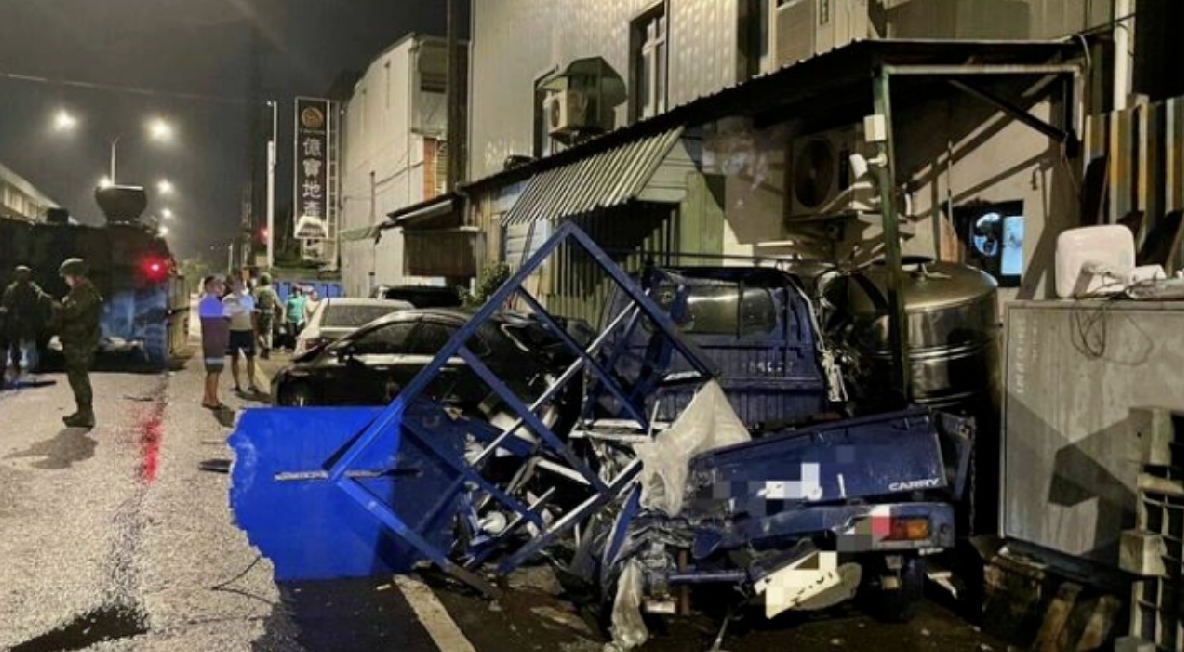 臺(tái)軍戰(zhàn)車撞擊民用車輛。(圖片取自網(wǎng)絡(luò))