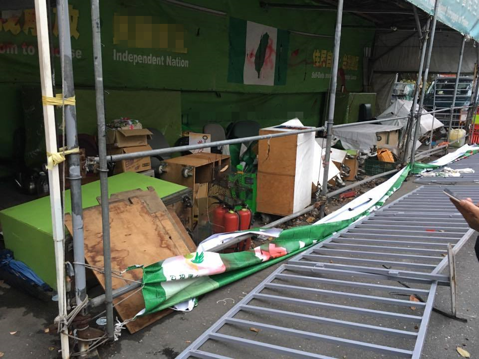 “獨(dú)派”帳篷被國民黨青年軍潑漆砸毀。(圖片取自臺媒)