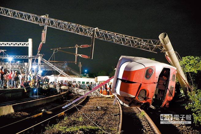 10月21日,臺鐵普悠瑪列車翻覆,釀18死重大事故。(圖片來源:臺灣“中時電子報”)