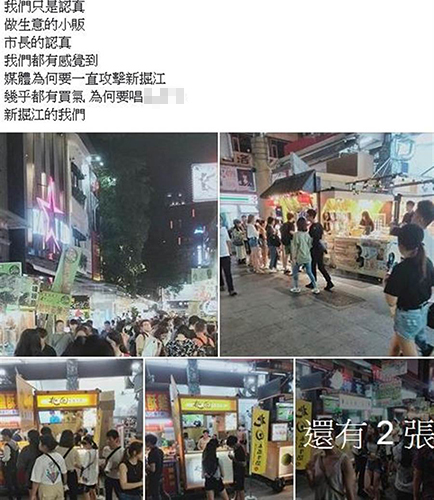 一位新崛江攤商不滿(mǎn)媒體為何要一直攻擊新掘江,貼出新崛江人潮照片。(圖片取自臺(tái)媒)
