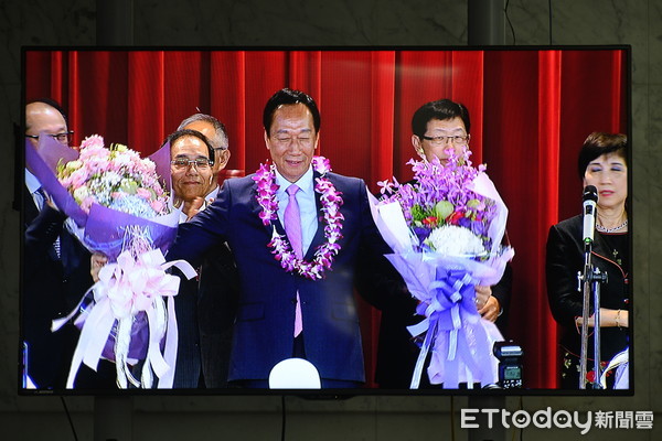 郭臺銘(中)正式卸任鴻海董事長。(圖片來源:臺灣“東森新聞云”)