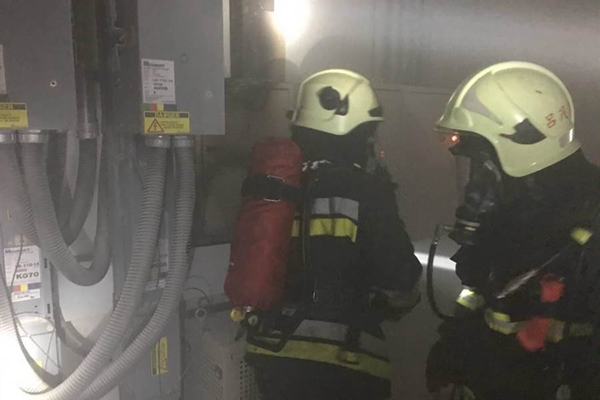 變電箱起火冒煙,消防員處置。(圖片來源:臺灣“中時電子報”)