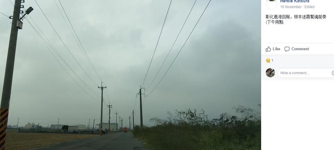 是的,各位沒有看錯,上圖是臺灣中部的景象,新一代“霾都”的稱號請拿去!
