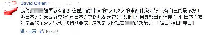 也有一些人認為會對如此批評稱贊“中肯”的人,都是拜如今蔡當局“媚日捧日親日”的政策所賜,“在日本人眼里,別人都是臟的,但別忘了,臺灣是因為被日本占領殖民過才會臟亂的”、“臺灣‘皇民’的劣根性,看見日本就叫媽媽”。