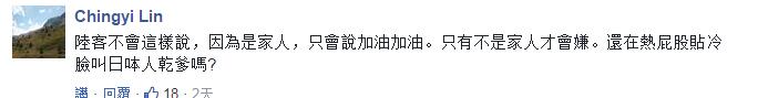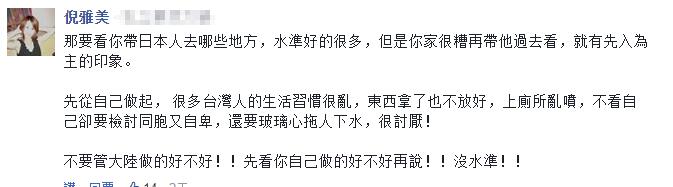 除此之外,另一些臺灣網(wǎng)友的爭論點則是放在了批評的“發(fā)聲主體”上,“幸好是被日本人酸,換做是大陸人,(對方)豈不是被罵翻天”、“日本人批就評價‘中肯’,換成陸客批,你們就氣急敗壞,還得說大陸也好不到哪里去”,“這就是臺灣人的‘奴性’”。