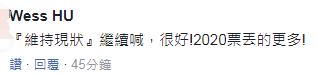 而針對蔡女士“寧折不彎”的做法,島內網友也紛紛為其豎起大拇哥,“請繼續‘維持現狀’,2020就讓你明白‘現狀為何’!”;還有人表示,“聽小英喊了兩年口號,現在才知道,原來她就是個騙子!”看到這里,二仔不免要吐槽一句:兄弟,你有點兒后知后覺了……