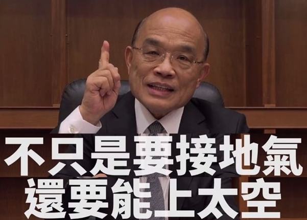 不過,蘇貞昌自己倒是沒有這種感覺,還在其Facebook網頁上傳短片,表示希望太空計劃達到“尖端技術養成”、“太空人才培育”、“太空產業擴散效益”三大目標,由太空守護臺灣,保衛市民生命財產安全。