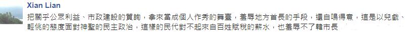 看到這兒,不知道各位是啥想法,反正侃爺對這姑娘真是“佩服”得五體投地:這是高雄市民和“韓粉”們,被黑得最慘的一次。