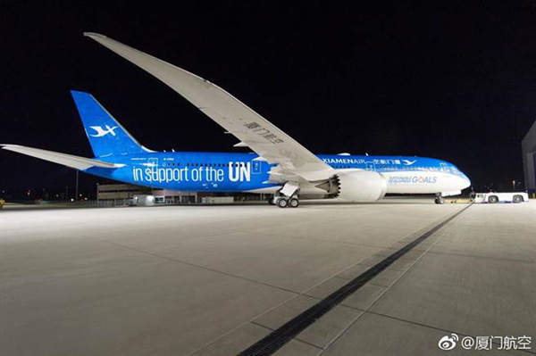 廈門航空波音787-95C彩繪機(jī)。(圖片來源:臺(tái)灣《中時(shí)電子報(bào)》)