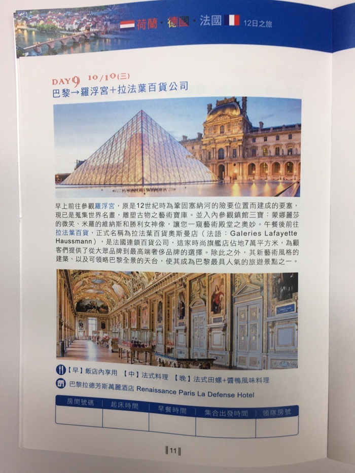 法國參訪盧浮宮及拉法葉百貨即占一天行程。(圖片取自臺媒)