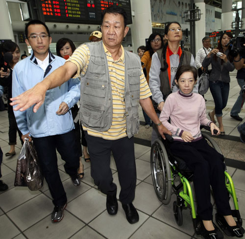 圖為吳淑珍日前與兒子陳致中搭高鐵到臺北探視陳水扁。