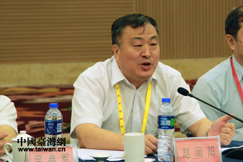 福建省司法廳副廳長、省人民調解員協會名譽會長趙閩陽在兩岸基層調解員聯誼交流會上講話。(中國臺灣網 陳佳慧 攝)