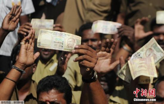 當(dāng)?shù)貢r間2016年11月23日,印度金奈,民眾抗議廢除大面額紙幣。8日晚,印度總理莫迪突然宣布,從9日起廢止面值500盧比和1000盧比的兩種大鈔,以打擊腐敗和黑錢交易。