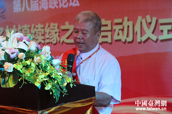 “第八屆海峽論壇 閩臺同名村鎮續緣之旅”啟動儀式上,來自泉州市泉州港前黃鎮鳳山村連氏家族的代表連育華發言。(中國臺灣網 蕪同 攝)