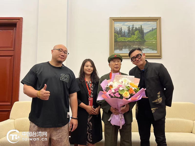 臺灣青年自媒體人與抗聯戰士王濟堂合影。(中國臺灣網記者 劉琳 攝)